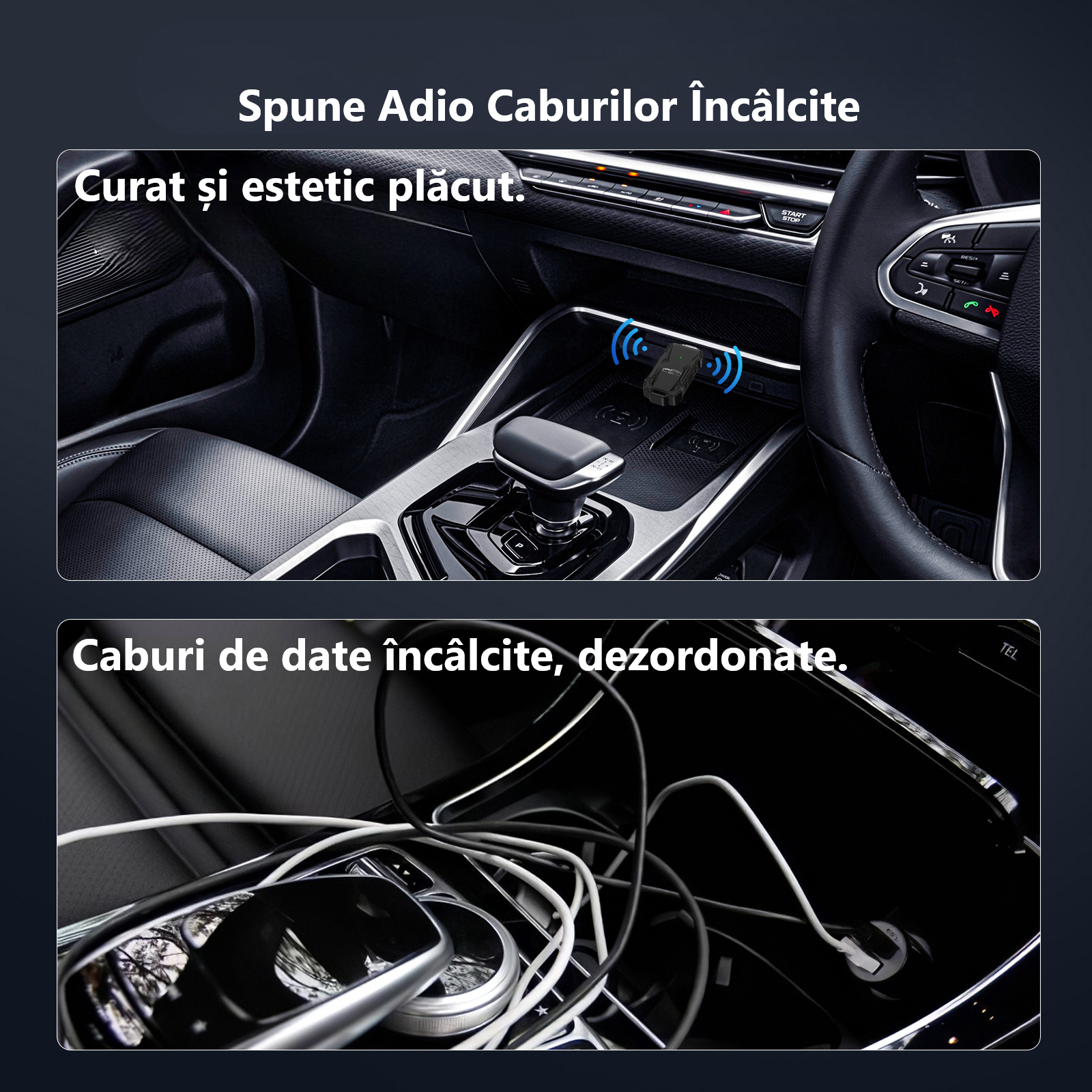 Adaptor Wireless Android Auto si CarPlay 2-in-1 ZYTEQ®️ K83, compatibil cu Apple iOS si Android, Plug-and-Play, WiFi Dual-Band, Bluetooth 5.2, cip A7 Quad-Core, compact, control vocal, transmisie stab