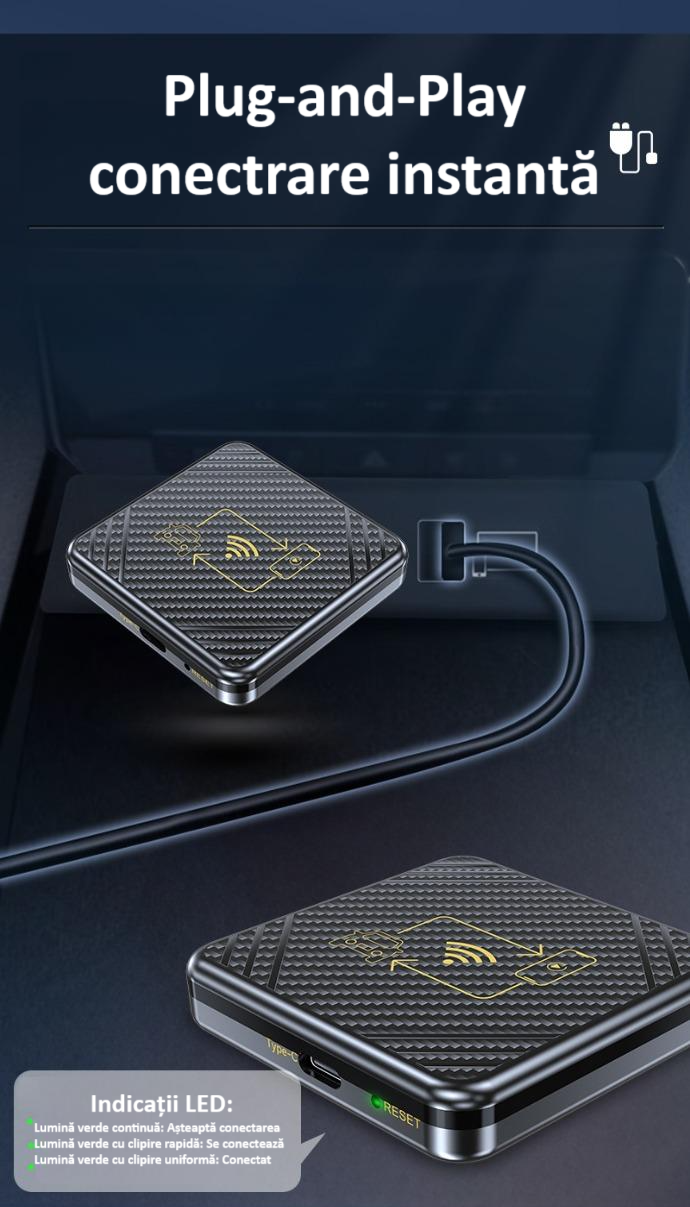 Transforma-ti experienta de condus cu Adaptorul Wireless CarPlay & Android Auto 2-in-1 ZYTEQ®️ Q1, solutia perfecta pentru integrarea rapida si facila a smartphone-ului tau in sistemul multimedia al masinii.