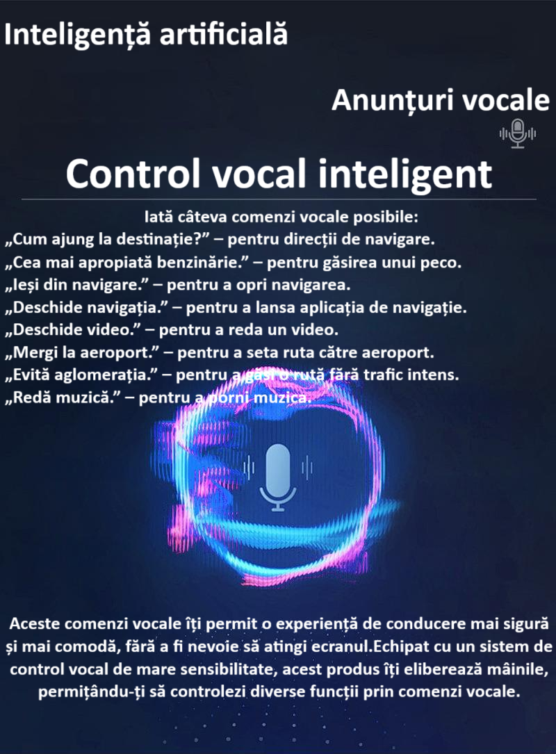 - Control vocal integrat: Permite interactiuni hands-free, mentinandu-te concentrat la drum.