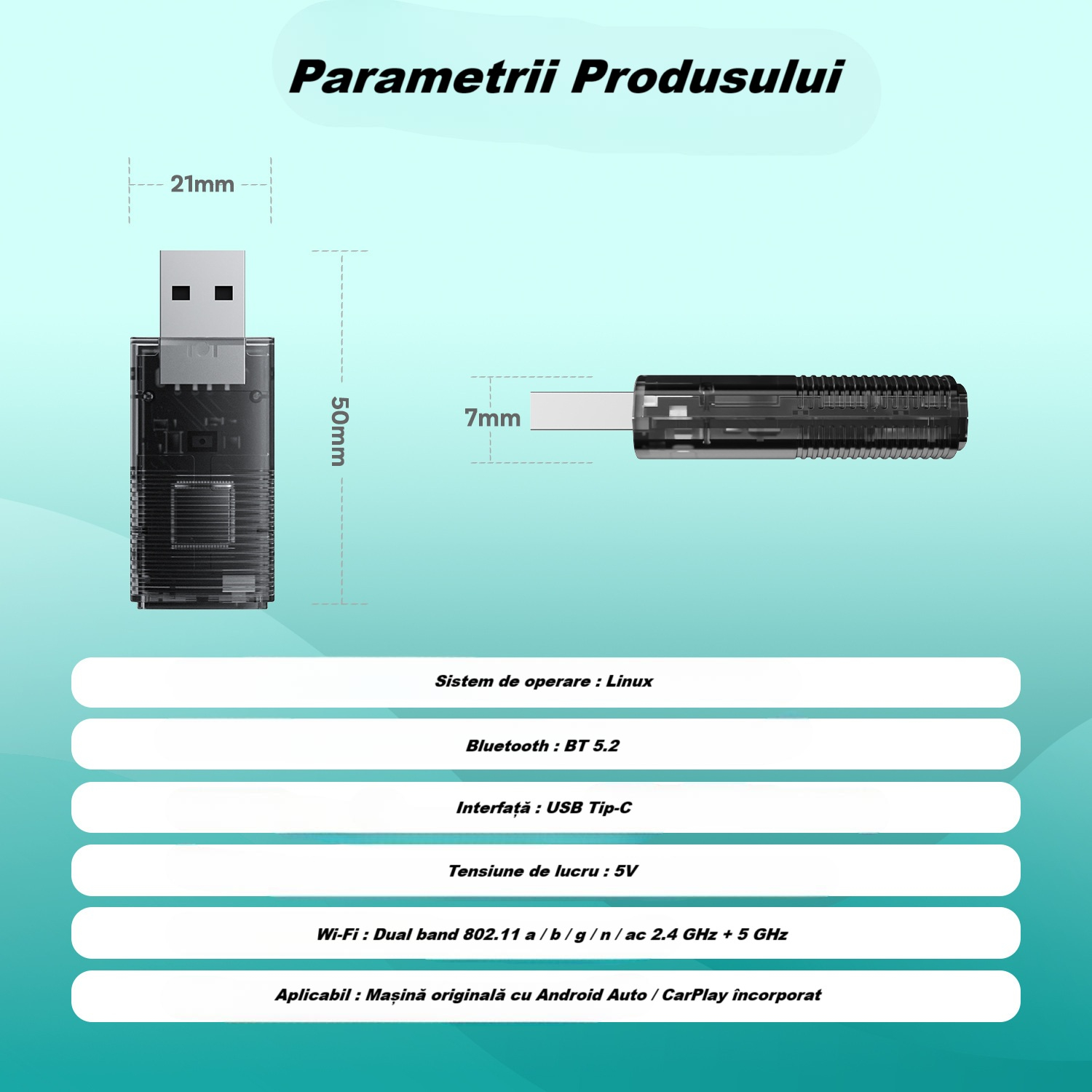 • Usor de Utilizat: Interfata USB Type-C permite o conectare simpla si rapida la sistemul masinii.