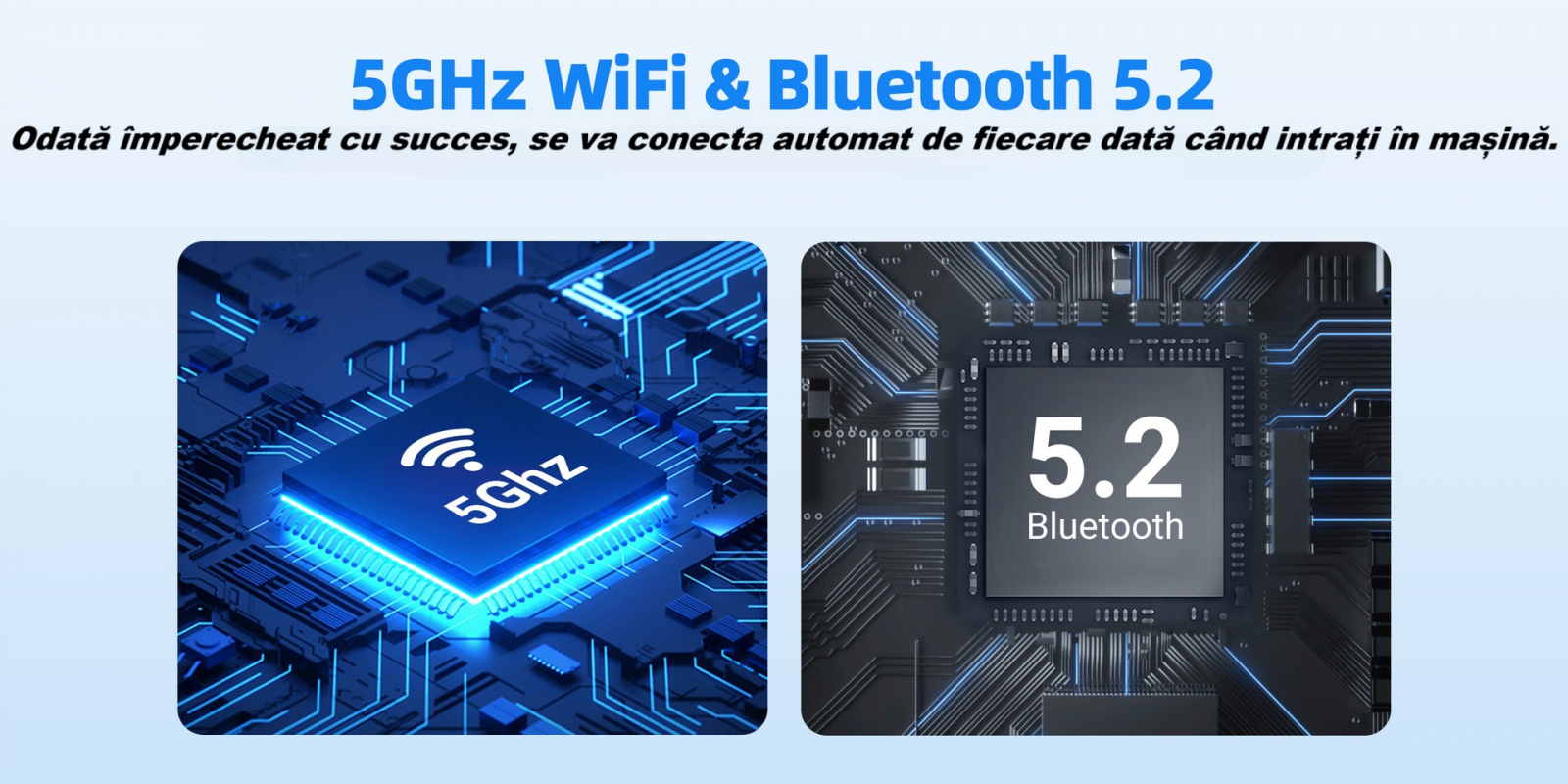 • Conectivitate Avansata: Suporta Wi-Fi dual-band (2.4 GHz + 5 GHz) si Bluetooth 5.2 pentru o conexiune stabila si rapida.