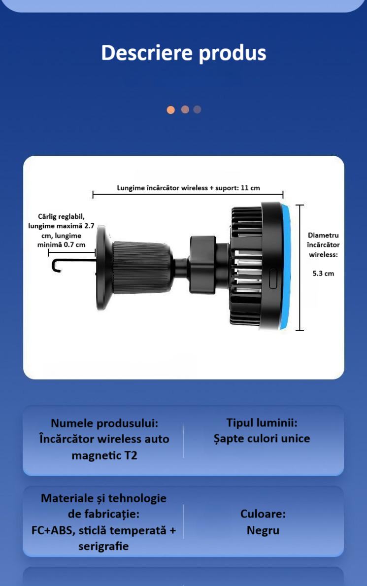 • Design Universal: Compatibil cu toate modelele de telefoane care sustin incarcarea wireless, iar forma sa compacta il face perfect pentru orice tip de masina.