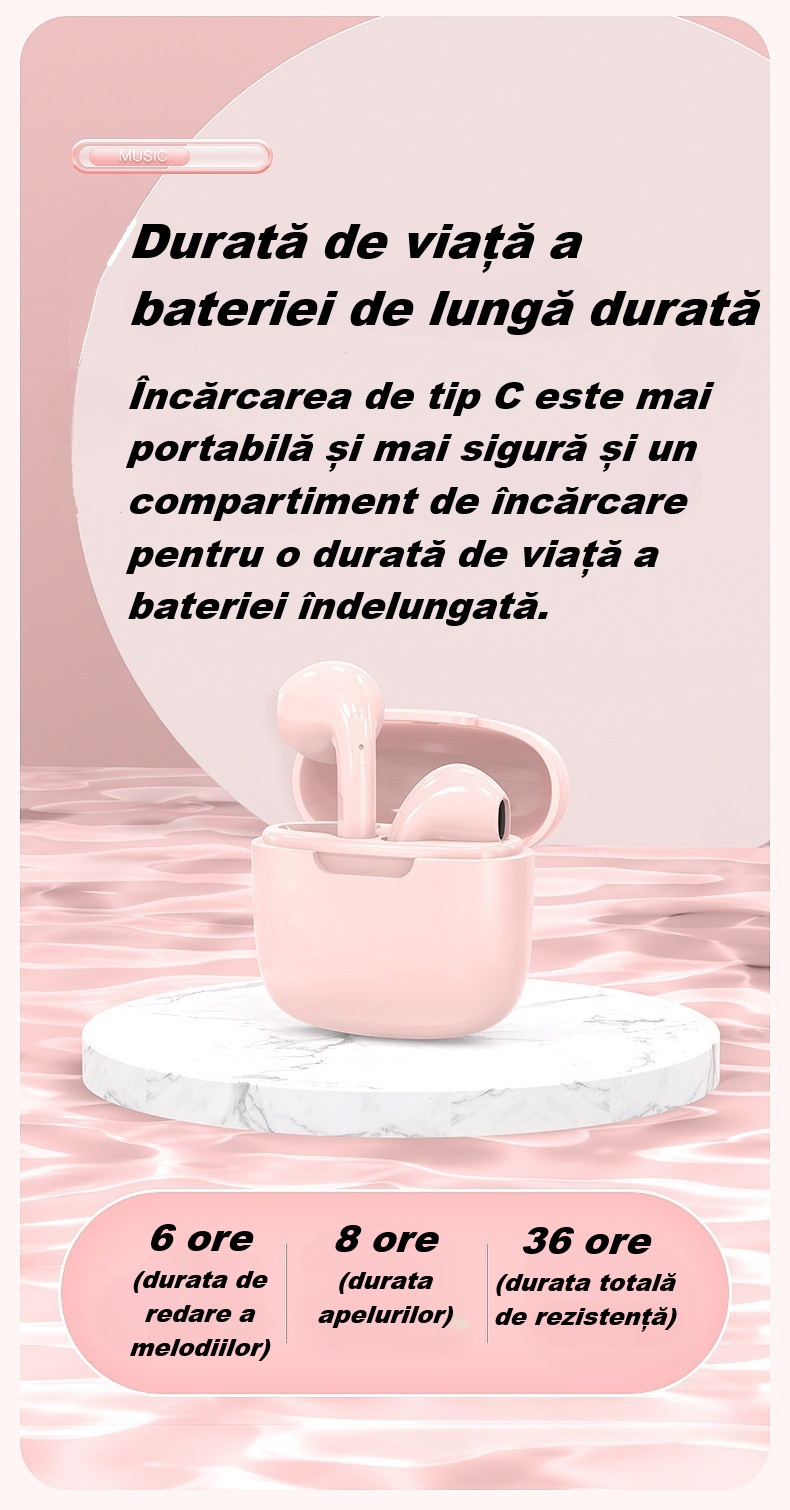 Bucura-te de 4-8 ore de redare continua si de pana la 20-24 ore cu carcasa de incarcare. Functia de incarcare rapida Type-C asigura ca esti mereu pregatit sa te bucuri de muzica.