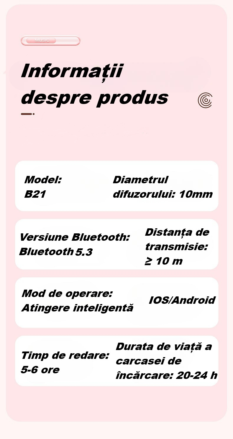 Cu un difuzor HD de 10mm si tehnologia Bluetooth 5.3, castile ZYTEQ®️ B21 livreaza un sunet clar si bogat, perfect pentru muzica ta preferata, podcast-uri sau apeluri clare. Designul ergonomic si confortabil le face ideale pentru purtare indelungata, fara dureri, fiind perfecte pentru utilizare zilnica.