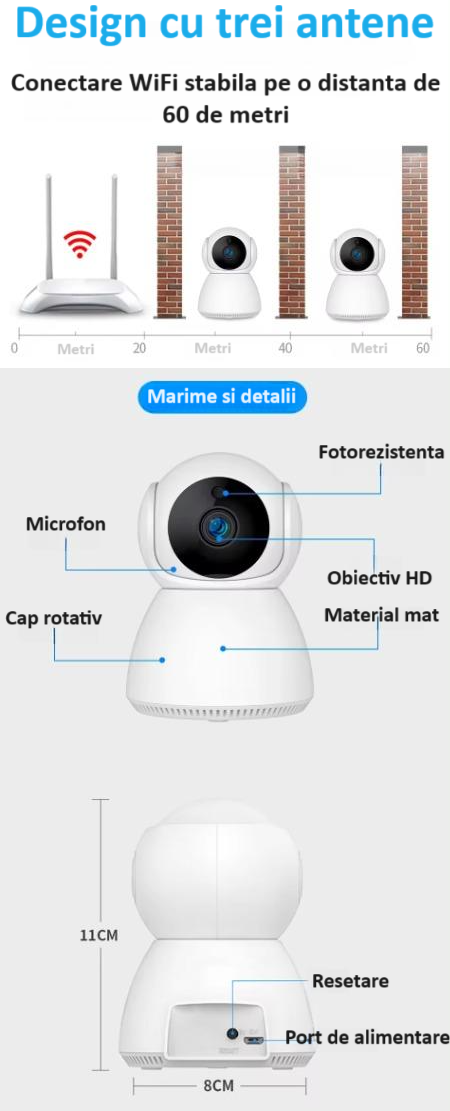 - Stocare Flexibila: Optiuni pentru stocare pe card de memorie sau in cloud, pentru pastrarea datelor in siguranta.