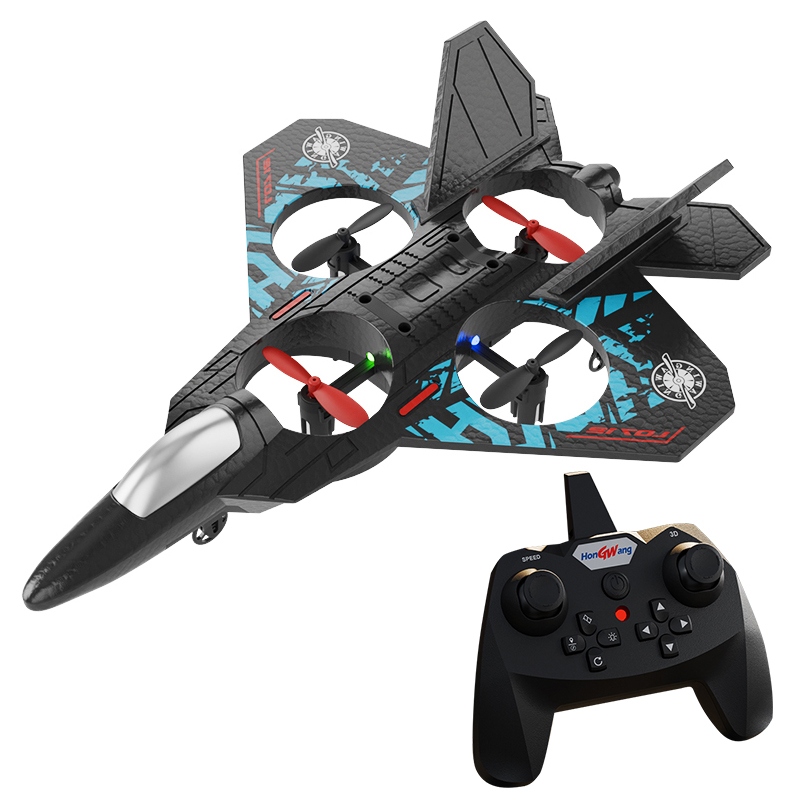 Avion RC cu telecomanda ZYTEQ®️L0712, planor din spuma cu inaltime fixa, jucarie quadcopeter, negru-albastru