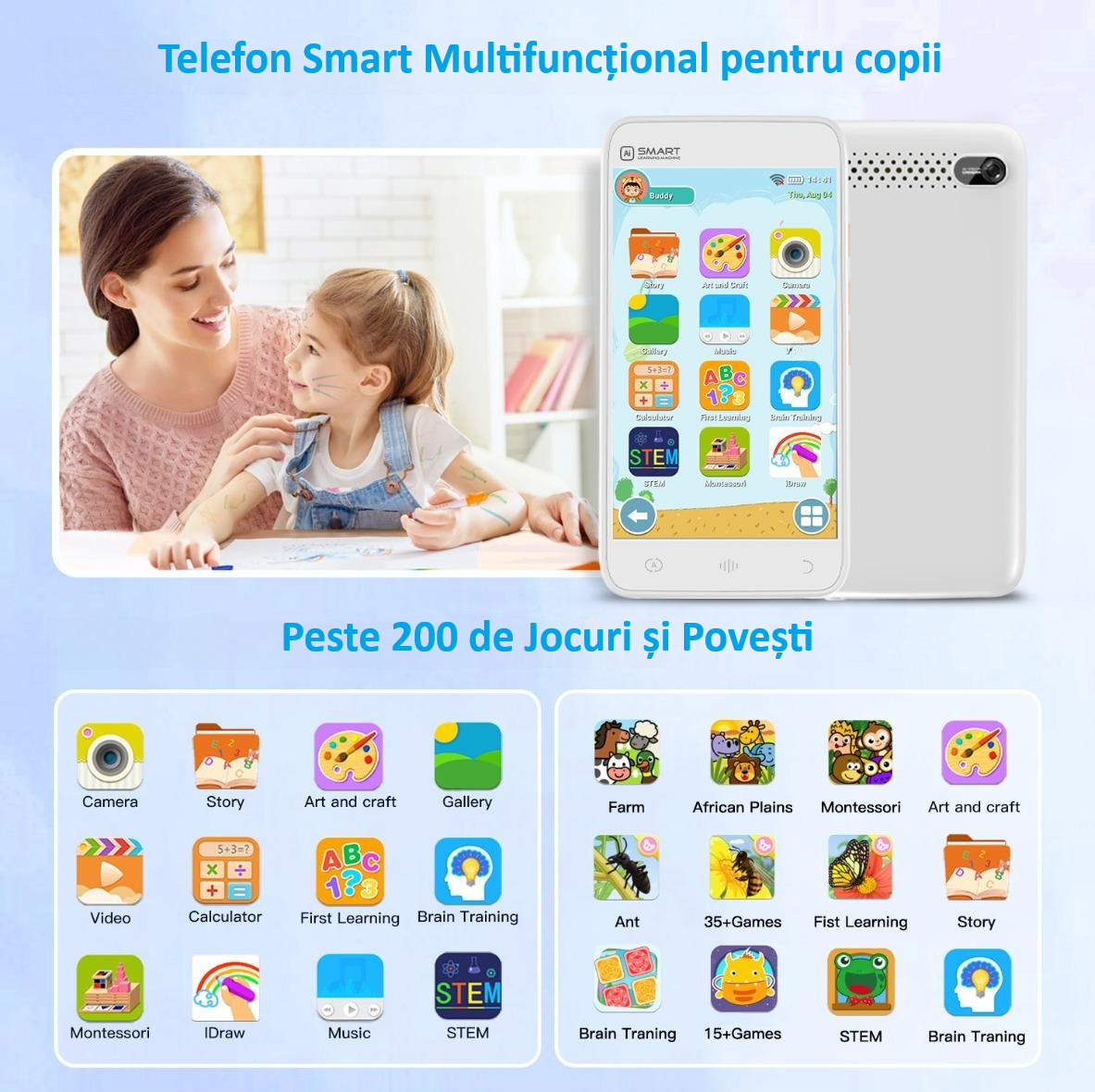 Smartphone Educativ pentru Copii D5H - Ecran LCD de 3.97 inch, Camera Foto 1080P cu Auto-Focus, Baterie Reincarcabila 2000mAh, Android, Alb