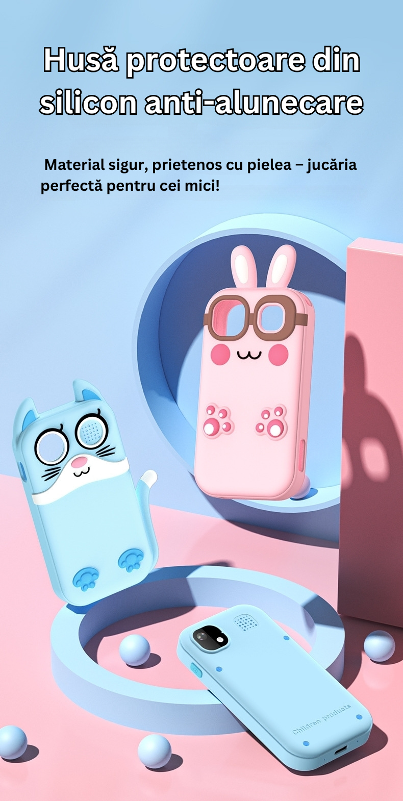 Alege din variantele simpatice de Pisicuta sau Iepuras, disponibile in culorile roz, mov si albastru.